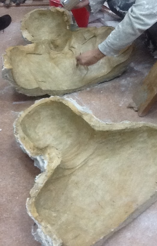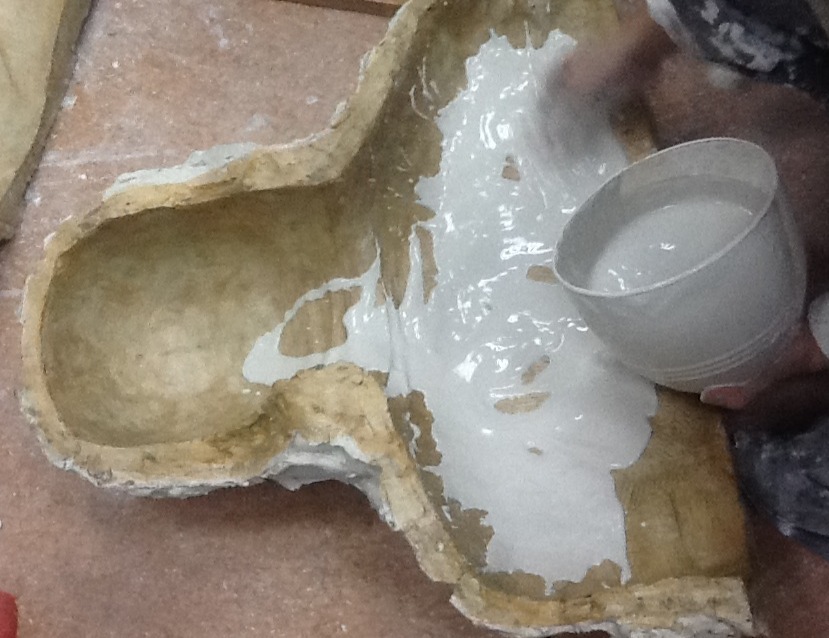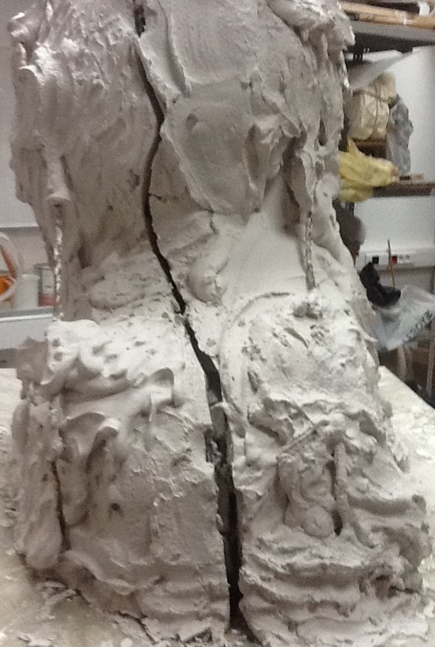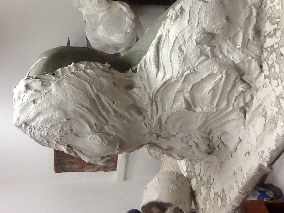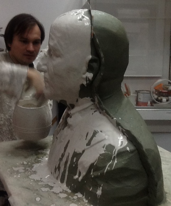 Из первоначальной формы должен произойти переход в твердые материалы. Скульптура обмазывается особым составом, чтобы избежать слепливания глины с гипсом